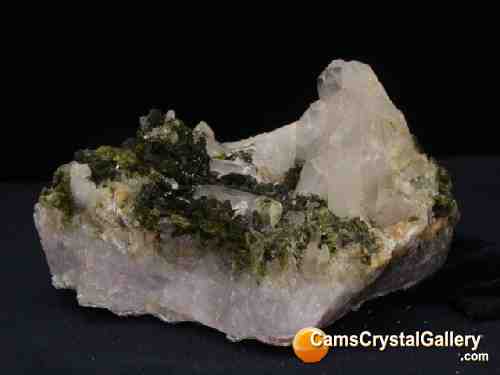 PRICE IS 20% OFF REGULAR PRICE. This is a beautiful quartz cluster with epidote crystals spread throughout the piece. This piece has no damage on any points and is in beautiful condition. Ancient Japanese believed quartz formed from the breath of a white dragon," and regarded it as representing perfection. Quartz is the most recognized crystal and is often known as the ""Universal Crystal."" Epidote is a crystal that enhances whatever aspects of life you focus it on. It is a dispeller of critical illnesses", and is great for enhancing perception.