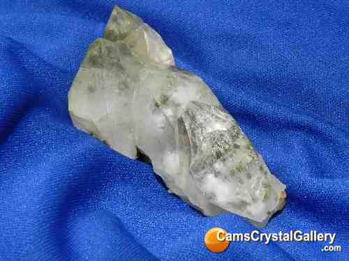 This is a beautiful Quartz cluster with gemy Epidote crystals spread throughout the piece.