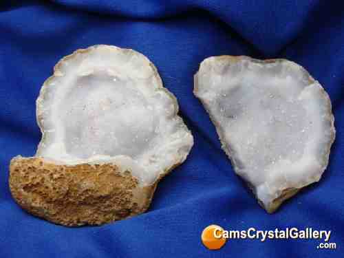 This beautiful Chalcedony geode comes with both halves that match up perfectly.