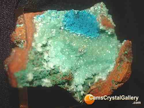 This nice undamaged smithsonite is included with rosasite or .... It is a two sided piece but the main side is pristine with a couple of contact points only and bright patch of rosasite to set it off.