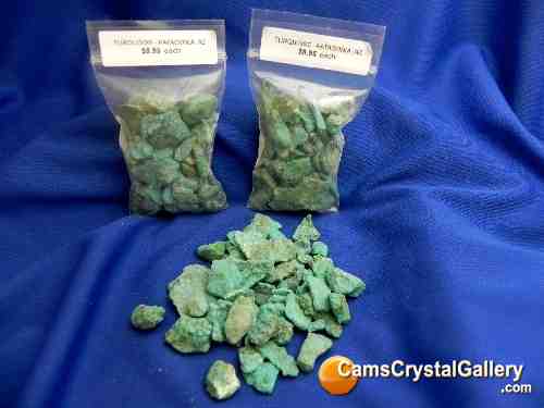 These are nice bags of beautiful rough turquoise from Patagonia, AZ. They are good sizes for wrapping or making jewelery. Turquoise is thought to help with spiritual attunement, cleansing, healing, protection, valor, soothing, peace of mind, guidance through the unknown, romantic spontaneity.
