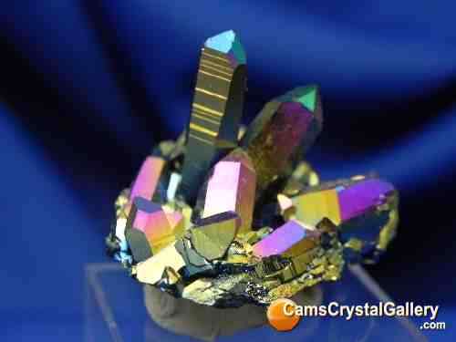 No this is not a naturally occurring specimen. The quartz is natural and has gone through a special process that has bonded titanium to the surface of the quartz. It is very durable and will not wear off.